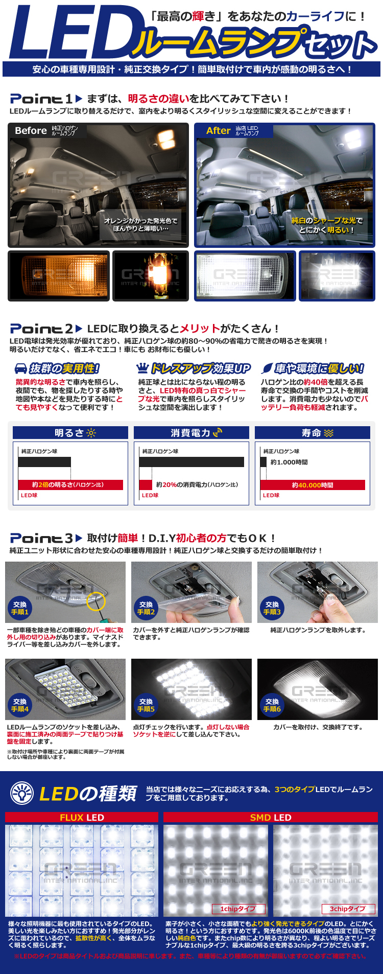 LEDルームランプに交換するだけで、よりラグジュアリー&スタイリッシュな室内に変身します。