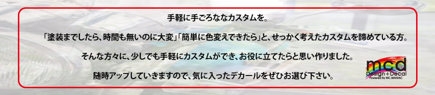 ![]() ![]() ホームページで貼り方の詳細も公開中です。https://www.maniac-c.com/decal/index.html←是非ご覧下さい。 ※ご入金の際は必ず落札代金+消費税+送料の合計金額をお支払いください※ ヤフオク!のオーダーフォームに入力すると自動的にお支払い合計金額が計算されます お支払いは必ずオーダーフォーム入力後に行ってください ※ご入金金額はオーダーフォーム入力後表示される金額が確定の金額です※ 同梱希望の場合を除き、個別に入金金額確定のご連絡はしておりません ご入金の場合、弊社からの返事を待たずにお手続きください ※Yahoo!かんたん決済ご選択の場合 別途支払い手続き が必要です※ オーダーフォームに入力しただけでは支払いはできません ![]()